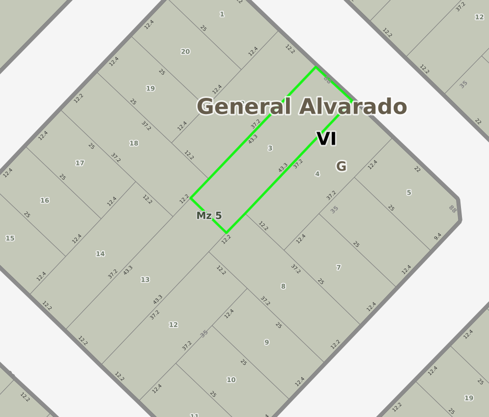 Lote de terreno ubicado en calle 88 e/ 35 y 37, Mar del Sur, cuenta con 12.20 Mts. de frente por 43.30 Mts. de fondo.